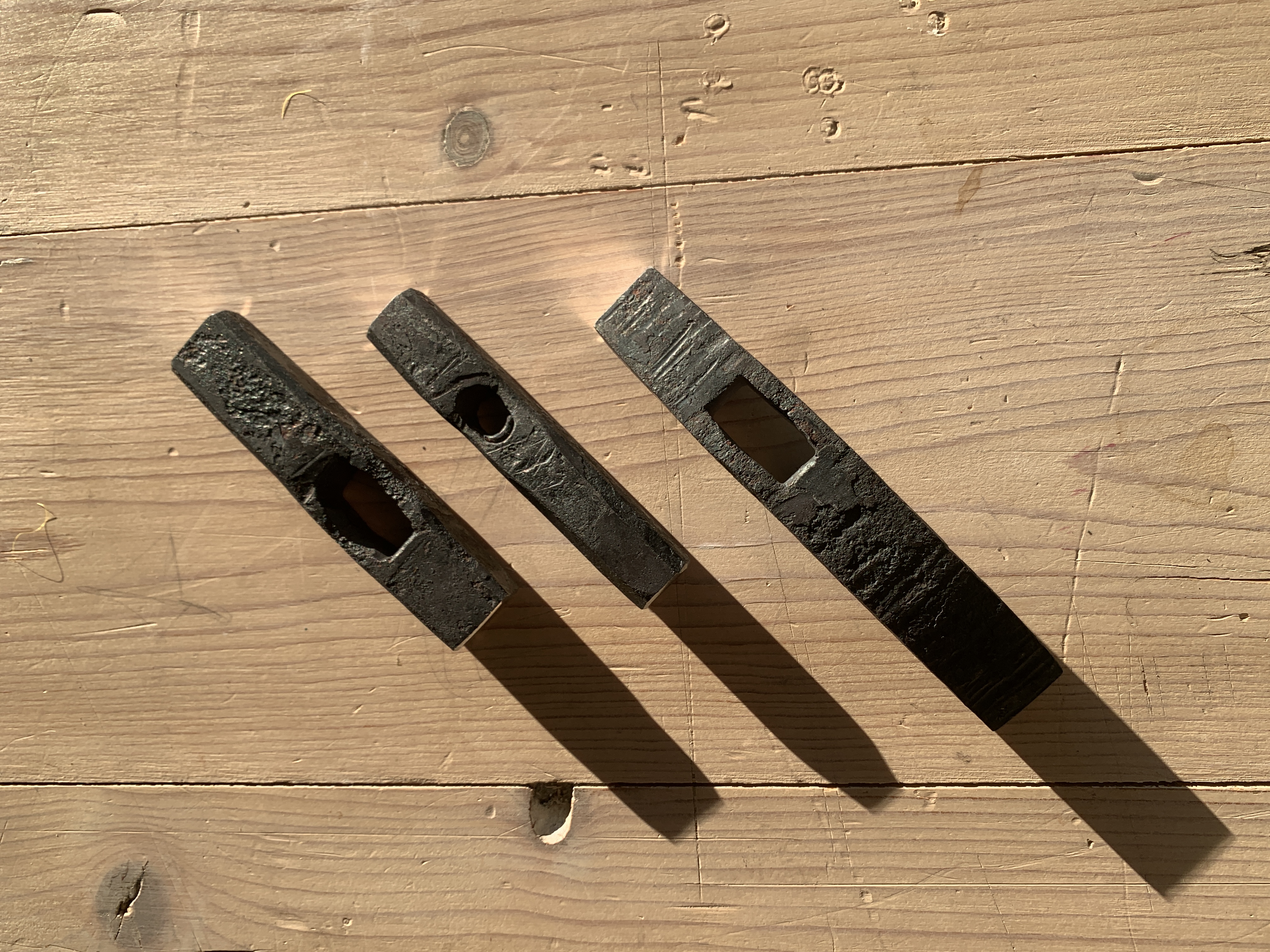 As hammers are crucial for any workshop I created my own set of hammers from, to have a good feel with these tools and have a stronger connection with them. The shape is inspired by japanese hammers, rectangular hammers where the handle is offset from the center. The hammers have a flat side and a slight rounded side, this side is crucial for woodworking used in a technique called Kigoroshi, “killing the wood”. This side is used to hammer the wood so that the fibres spread without having a harsh dent and breaking the fibres. The hammer heads are forged to my liking, the handles are hand carved from wengé wood using my other hand forged chisels.