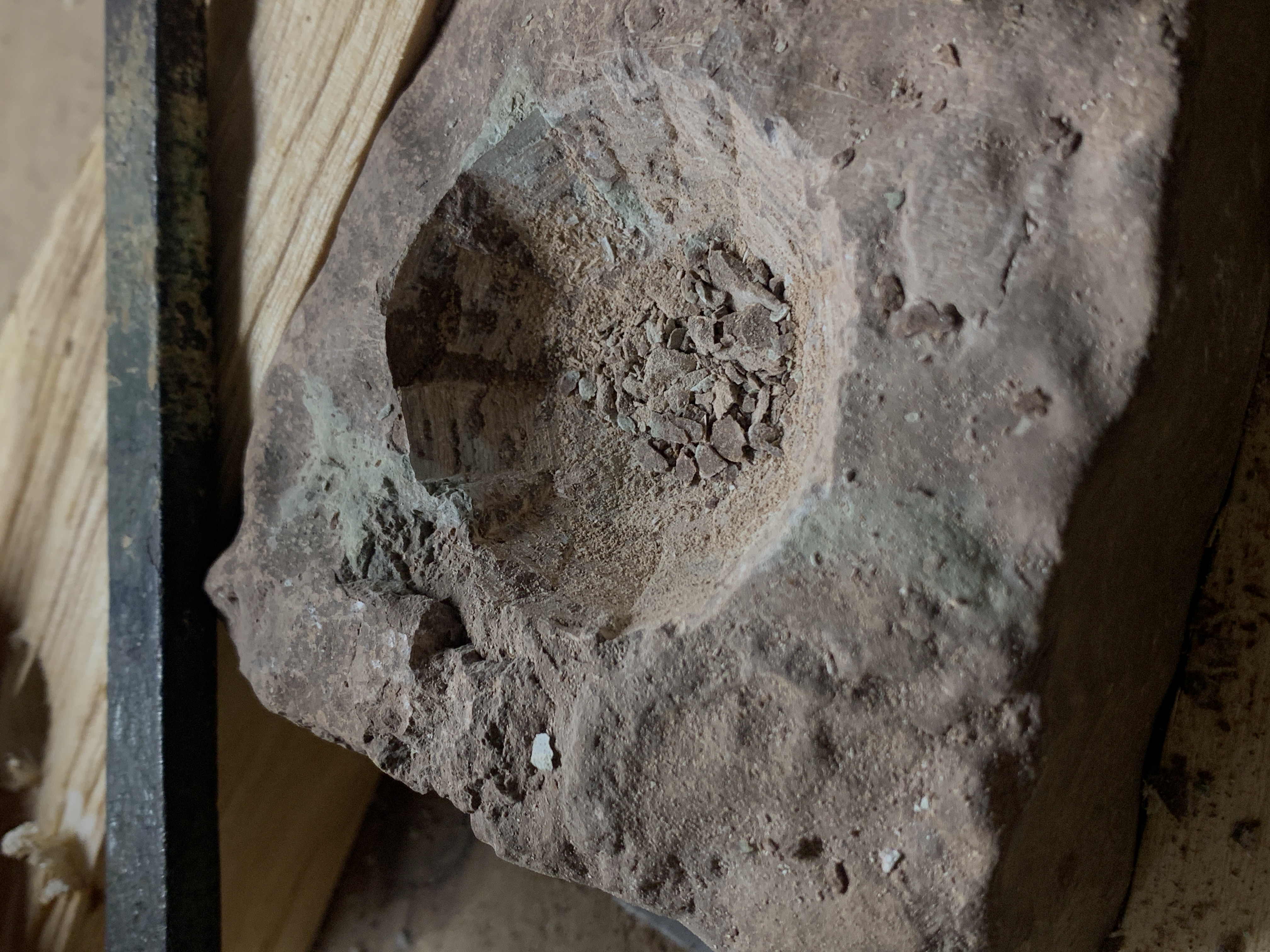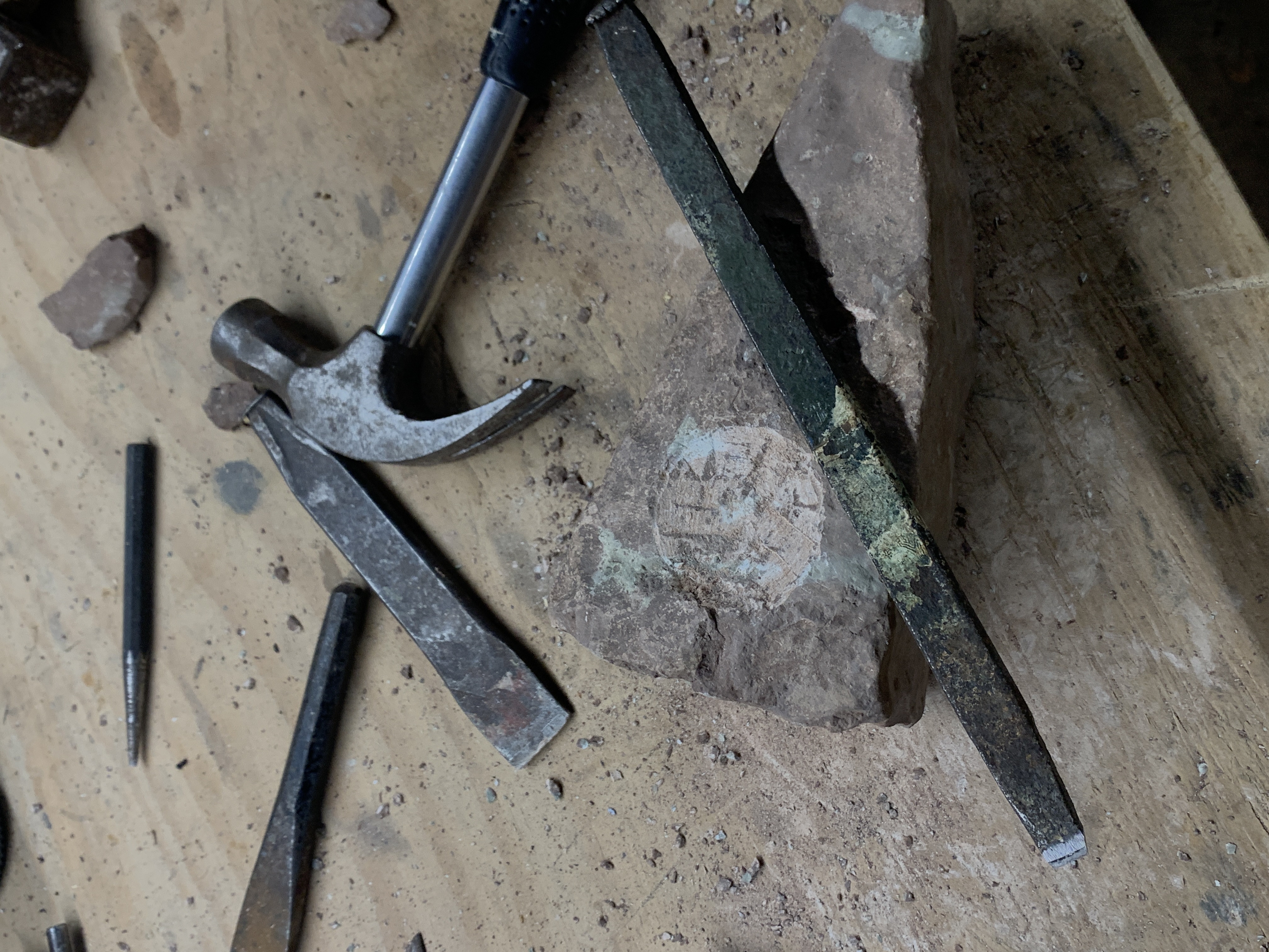 The story of this mortar and pestle starts when I found a piece of lime stone at the stone masonry in Råbäck, Kinekulle in Sweden. I wanted to make a mortar from it by hand carving. I made a stone carving chisel and used this to carve a cavity in the rock. Afterwards I turned a pestle on the lathe from a left over piece of wood laying I had saved for a long time. Together these pieces can be used to crush small amounts of spices.